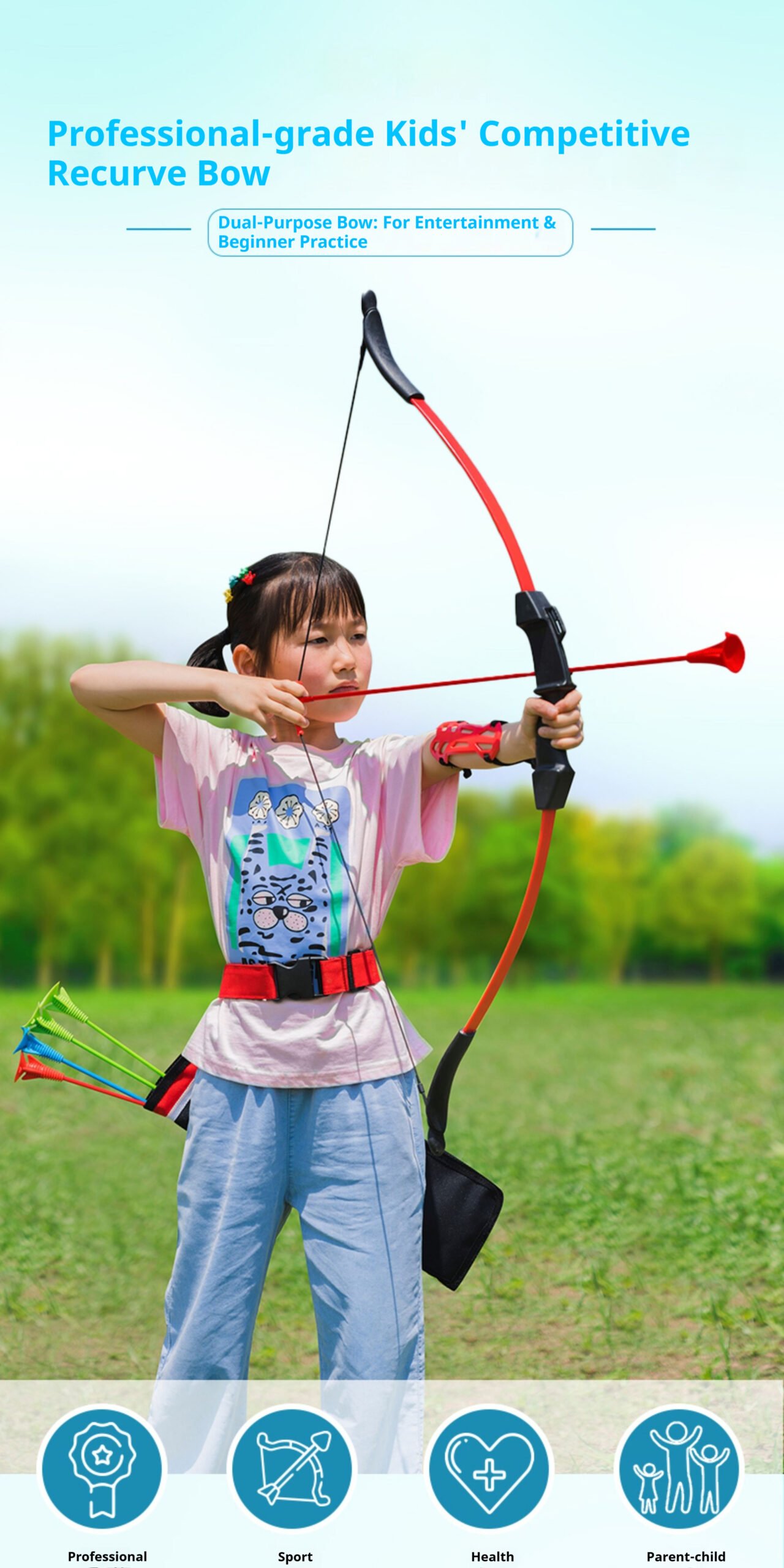 Professional children’s recurve bow and arrow, adolescent and adult archery shooting sports set toys
