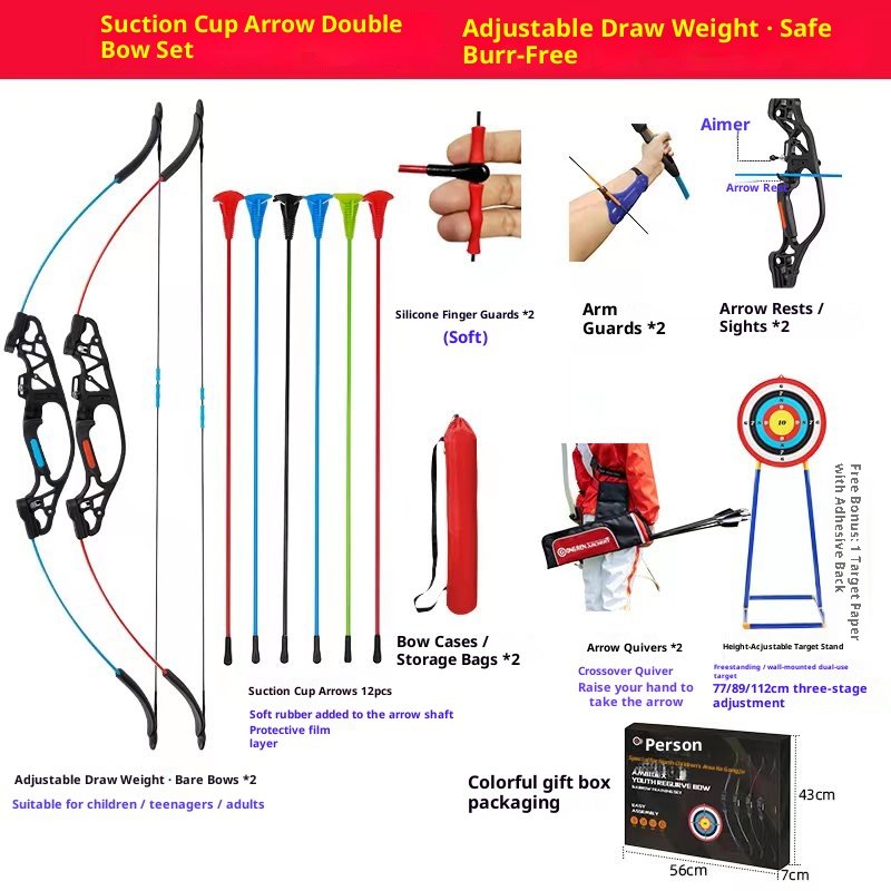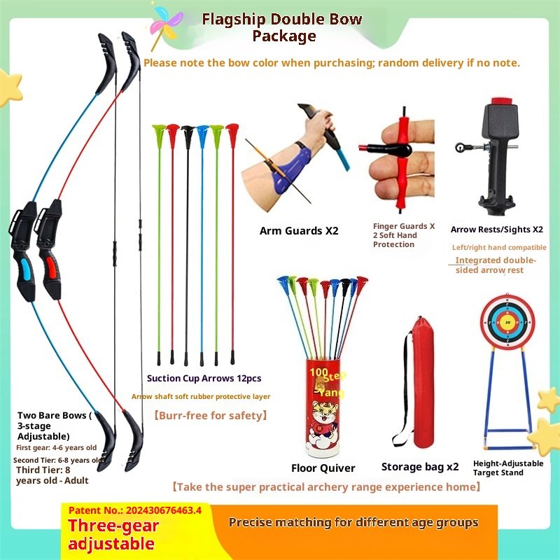 Upgraded version with adjustable tension: Suction cup arrow double bow package