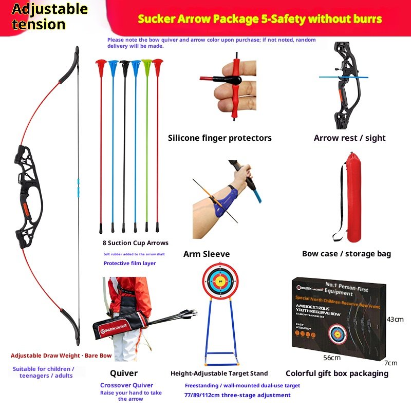 Professional children’s recurve bow and arrow, adolescent and adult archery shooting sports set toys