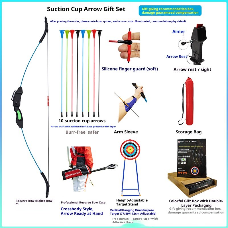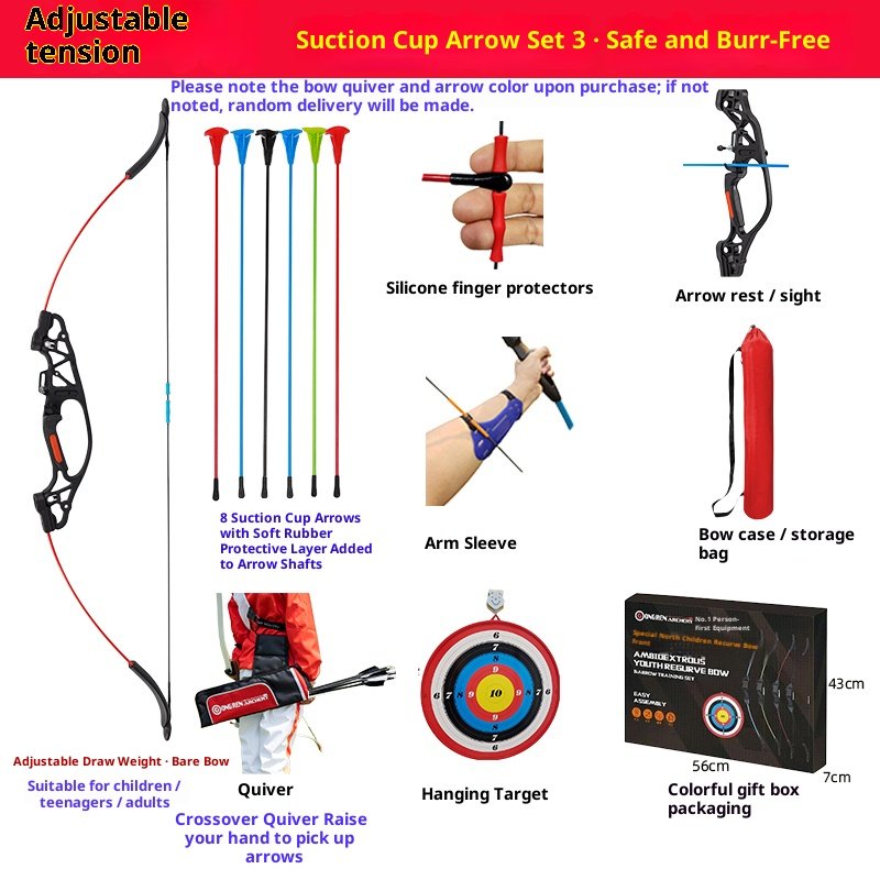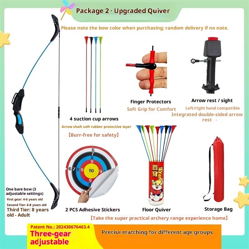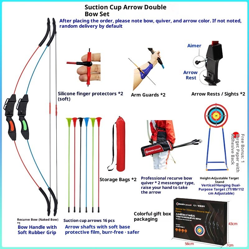 Upgraded version with adjustable tension in three levels: suction cup arrow double bow package